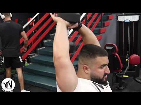 פשיטת מרפקים מעל הראש כנגד משקולת יד